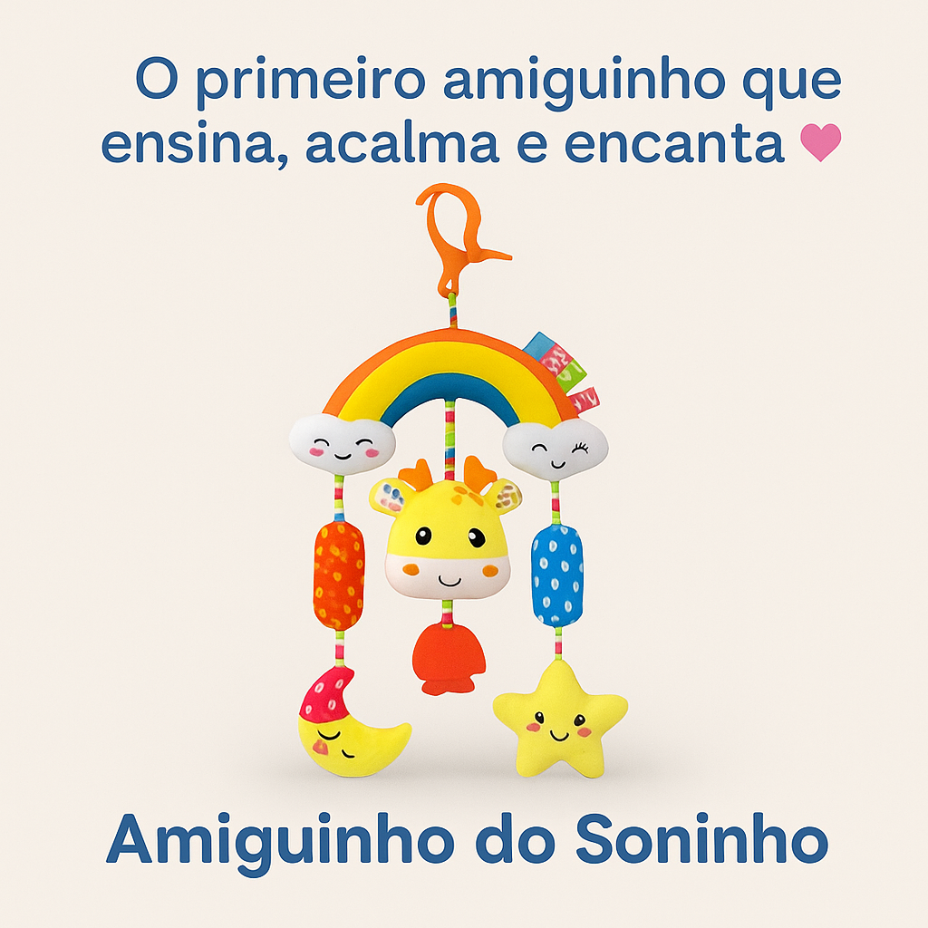 O Amiguinho do Soninho foi criado para acompanhar o bebê nos momentos mais doces do dia — seja no carrinho, no berço ou no colo da mamãe.