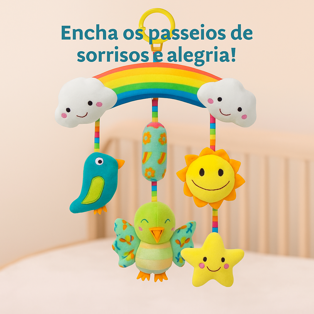🧷 Fácil de pendurar: pode ser usado no carrinho, berço ou bebê-conforto.