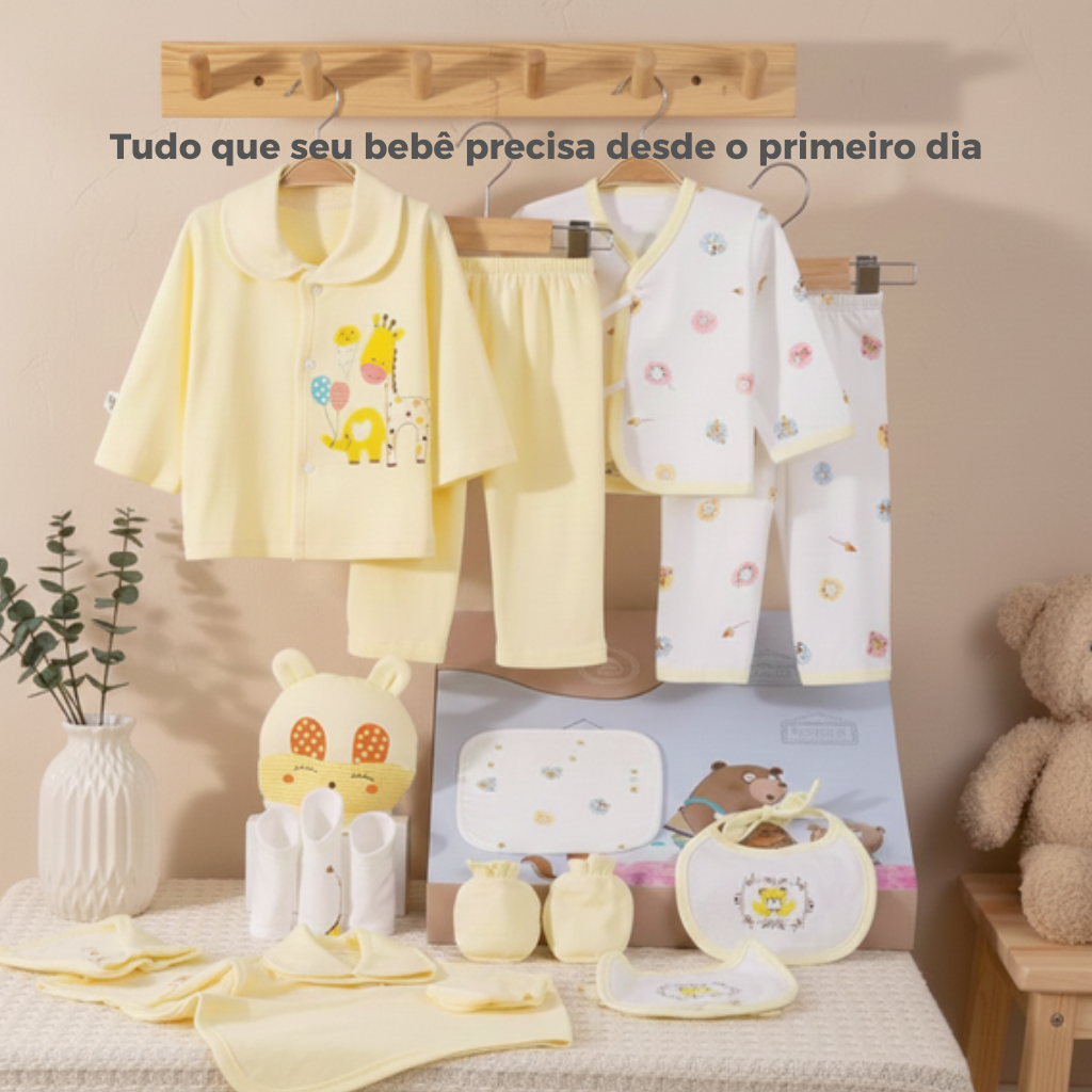 Um conjunto completo com os itens mais importantes para cuidar do seu bebê com praticidade, conforto e segurança desde o primeiro dia.