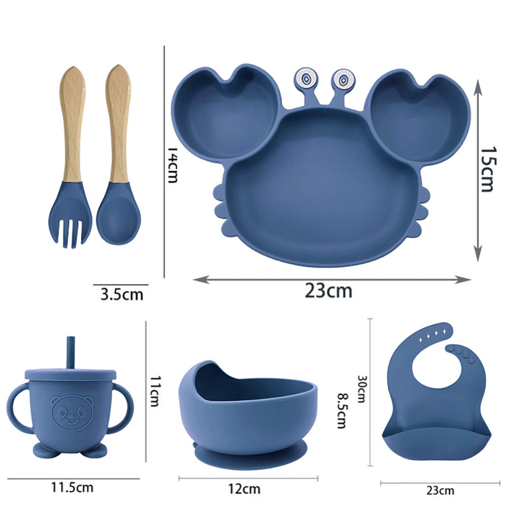 O design encantador em formato de caranguejo sorridente desperta a curiosidade dos pequenos, enquanto cada peça foi pensada para promover independência, segurança e diversão. Ideal para as primeiras papinhas e para estimular o bebê a comer sozinho com alegria! 🍽️💙