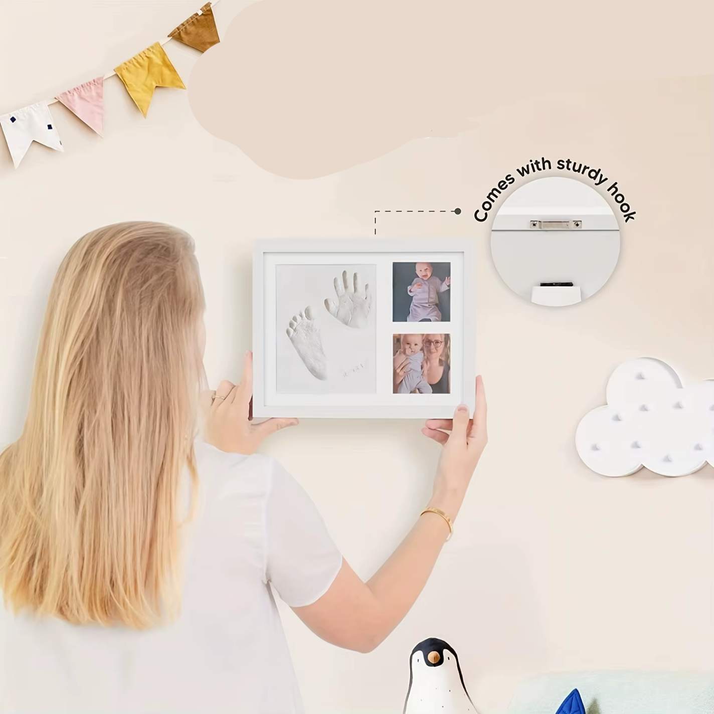 Crie uma recordação eterna dos primeiros momentos do seu bebê com este lindo porta-retratos com argila para moldar mãos e pés. Um presente perfeito para meninos e meninas, ideal para recém-nascidos, chás de bebê ou aniversários.